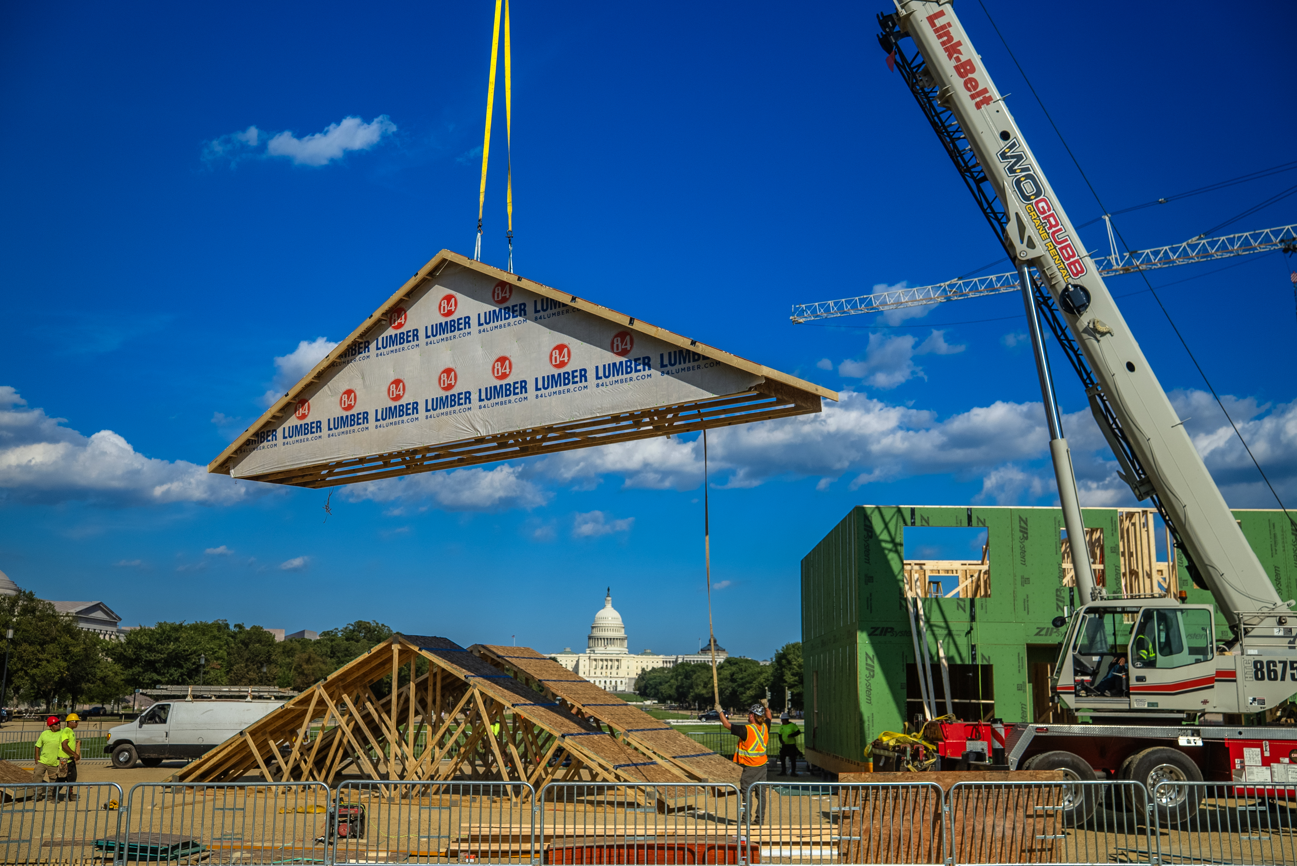 EIGHTY FOUR, Pa. (Sept. 22, 2025) – As part of this year’s Innovative Housing Showcase hosted by the U.S. Department of Housing and Urban Development (HUD) this month, 84 Lumber partnered once again with the Structural Building Components Association (SBCA) to bring componentized construction front and center on the National Mall in Washington. The project, a 3,000-square-foot, two-story duplex, was built entirely with prefabricated components, demonstrating the real-world benefits of building faster, more affordably, and more sustainably.