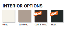 The new colors and finishes come factory-installed and can be added to any interior color window: White, Sandstone, Dark Bronze (shown below), Black, Satin Nickel, Antique Brass